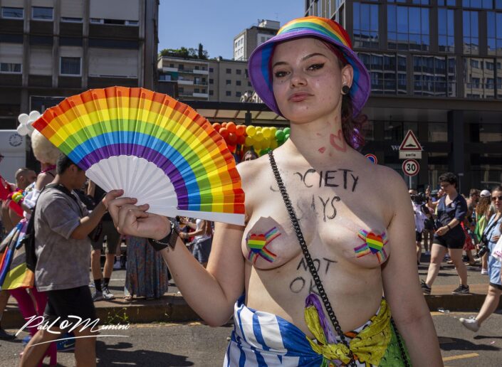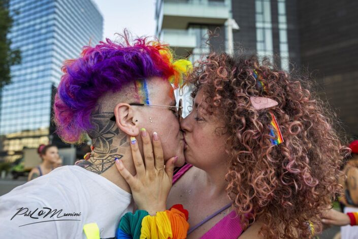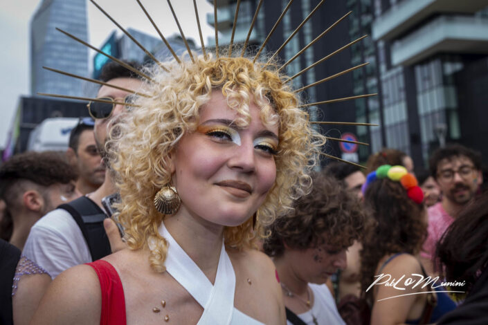 From the first event I photographed in 2013 to today, the city of Milan has seen increasing involvement from the population each year in this event, where the number of participants has now become so large that it brings the entire city to a standstill. In 2018, the Milano Pride attracted around 250,000 people and began its upward trend in attendance. After COVID, Milano Pride returned to the streets in 2021 with a static demonstration at the Arco della Pace, and in 2022, when Milano Pride resumed its original format, it’s estimated that 300,000 people marched — a figure that was confirmed again for the 2023 edition. In 2024, the number of participants exceeded that figure.